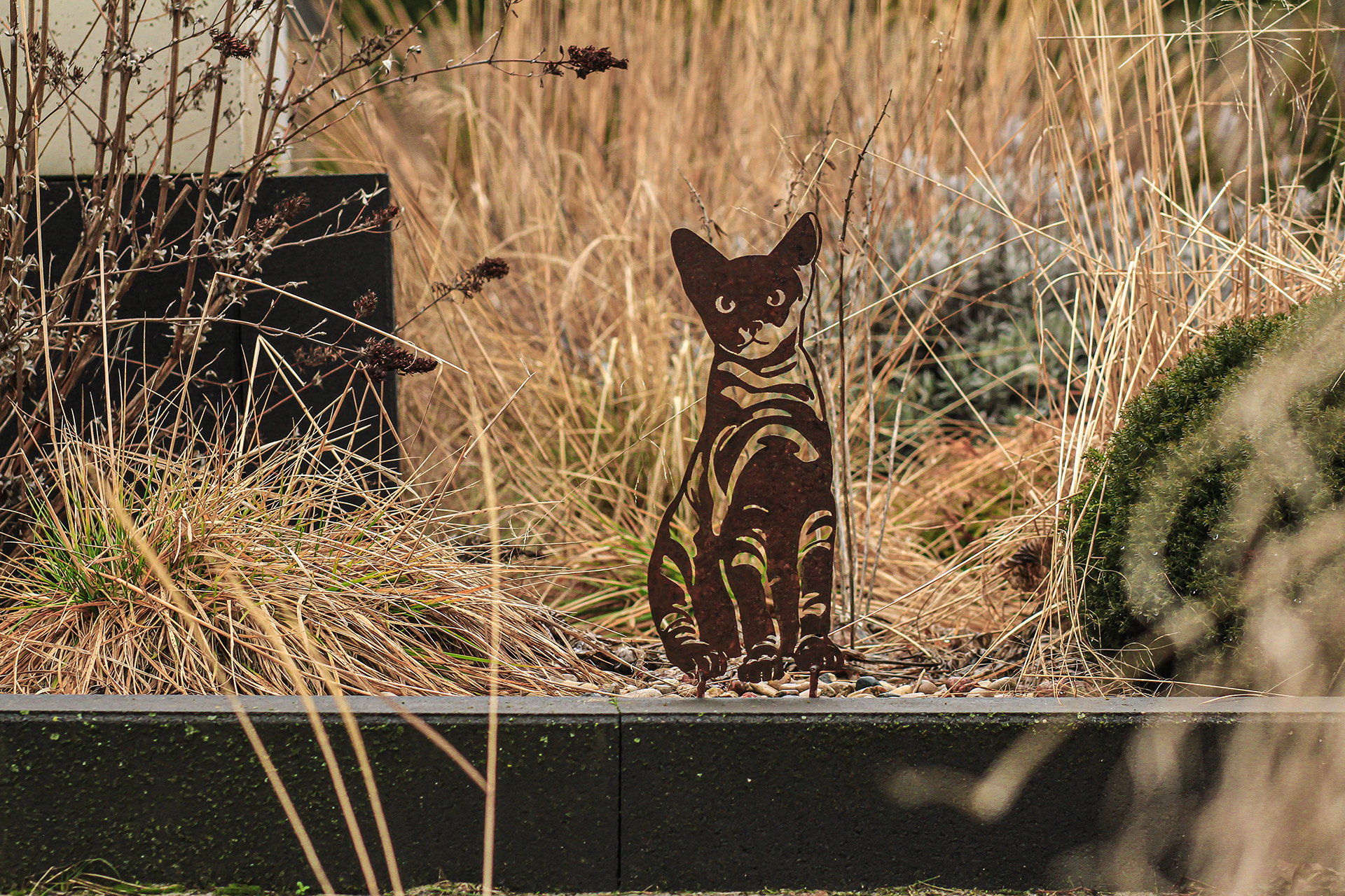 Metalowy kot wykonany ze stali cortenowej. Ten piękny ptak nie tylko dodaje uroku Twojej przestrzeni, ale także jest trwały i odporny na warunki atmosferyczne. Jego delikatne kształty i wykończenie nadają mu wyjątkowy charakter, który zachwyci Twoich gości. Postaw go w trawie, na ścieżce lub w pobliżu kwietników, aby dodać swojej przestrzeni ogrodowej niepowtarzalnego uroku.