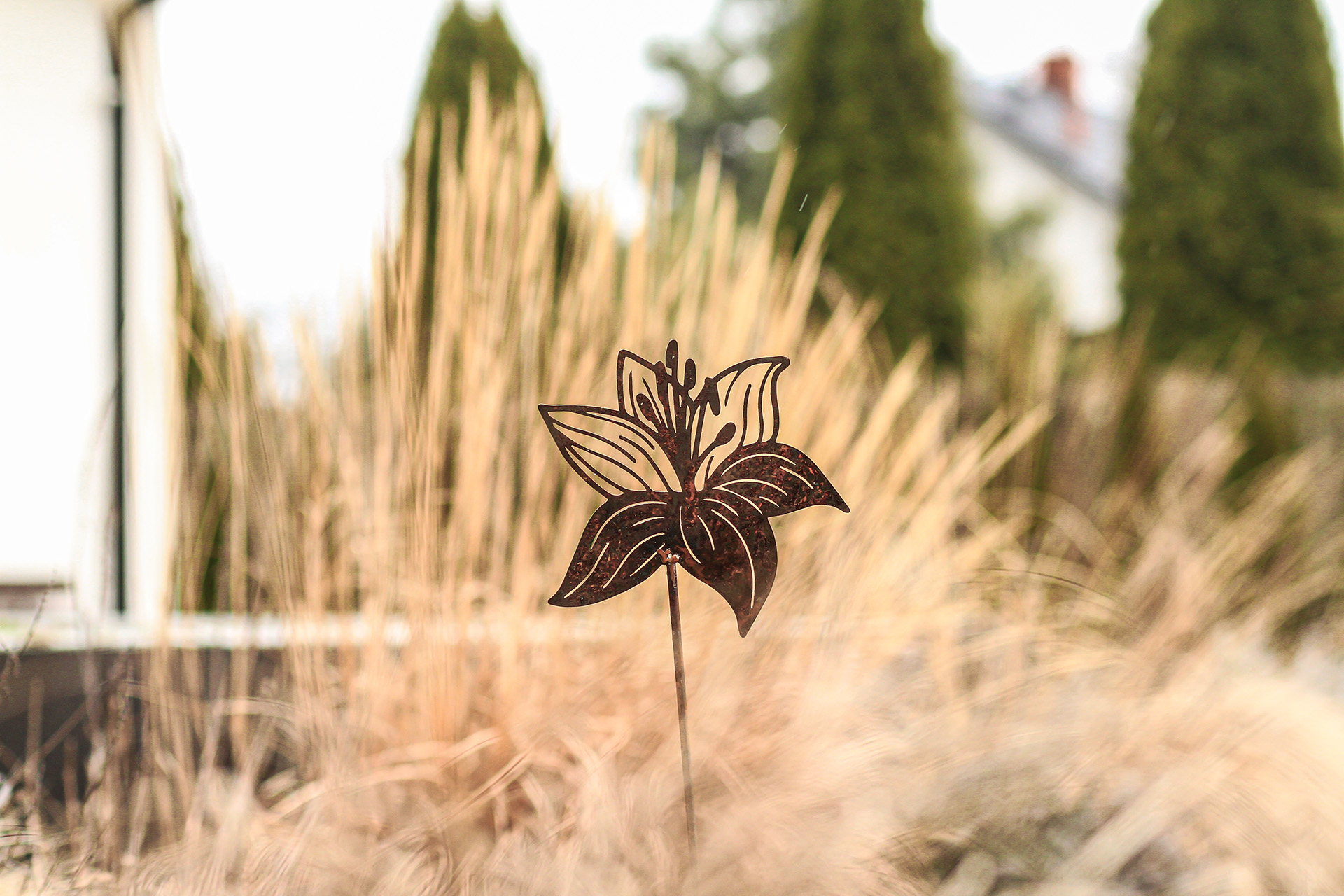 Metalowy kwiat wykonany ze stali kortenowskiej. Ten piękny kwiat nie tylko dodaje uroku Twojej przestrzeni, ale także jest trwały i odporny na warunki atmosferyczne. Jego delikatne kształty i wykończenie nadają mu wyjątkowy charakter, który zachwyci Twoich gości. Postaw go w trawie, na ścieżce lub w rabatach, aby dodać swojej przestrzeni ogrodowej niepowtarzalnego uroku.